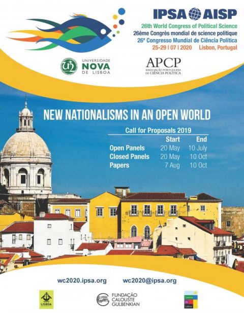 Find out more »The International Political Science Association's 26th World Congress of Political Science will be held in Lisbon, Portugal in July 2020. The Congress will have a diverse program under the theme New Nationalisms in an Open World.