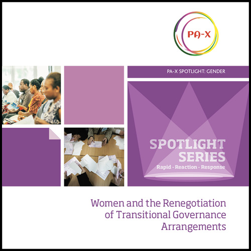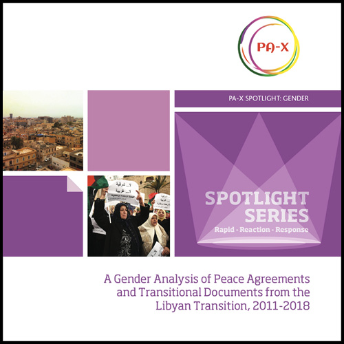 The PA-X Spotlight Series addresses questions regarding comparative peace processes, asked by those seeking to influence peace and transition processes to be more inclusive. This Gender Series deals with questions posed by a range of actors in the MENA region, with reference to women’s meaningful participation as well as gender-sensitive and responsive approaches.