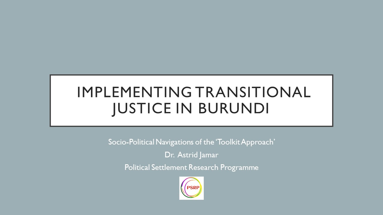Implementing Transitional Justice in Burundi: Socio-Political Navigations of the ‘Toolkit Approach’