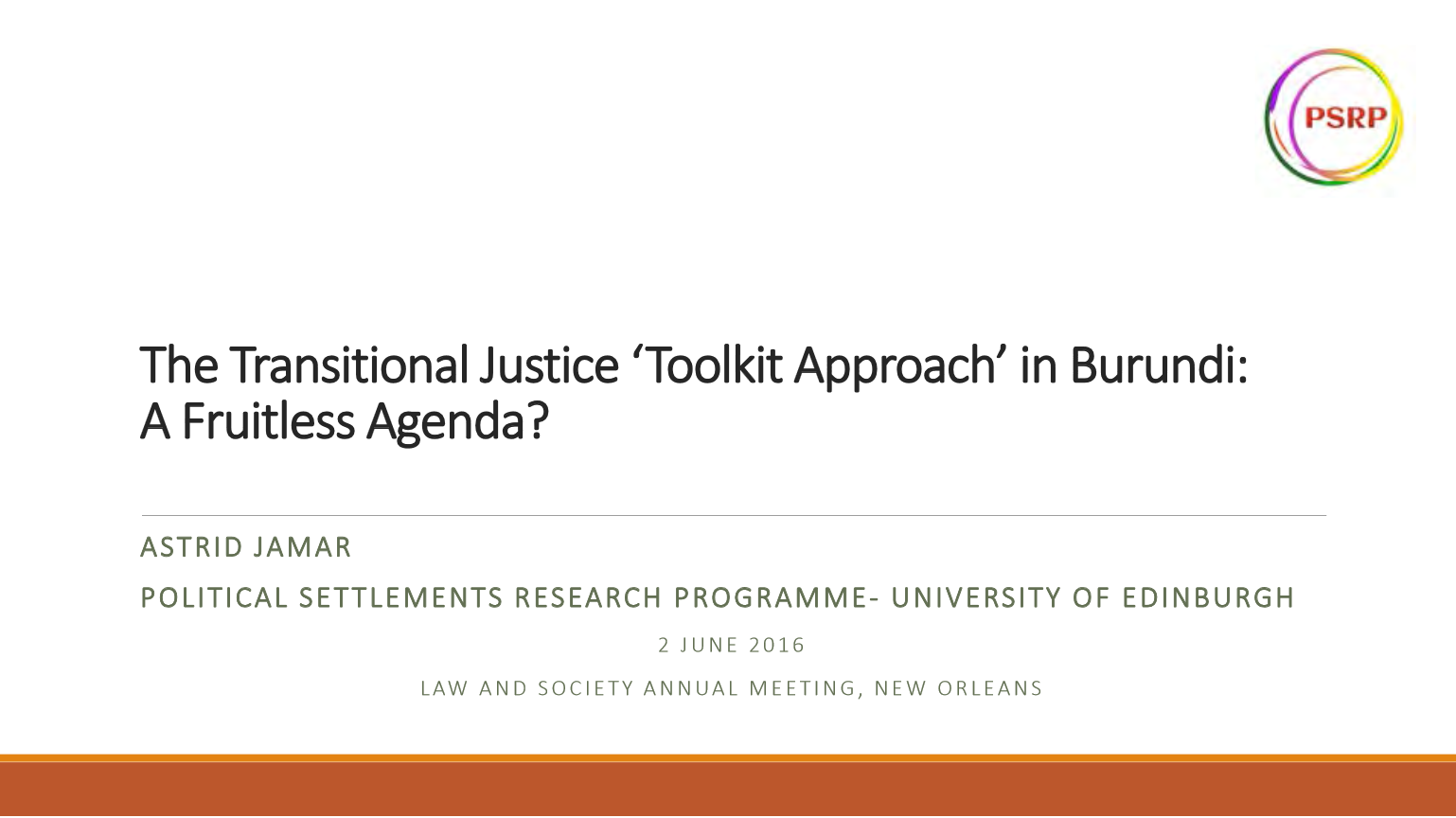 The Transitional Justice ‘Toolkit Approach’ in Burundi: A Fruitless Agenda?
